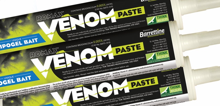Visit stand 1 at PestEx to talk to Barrettine about Romax Venom Lipogel.